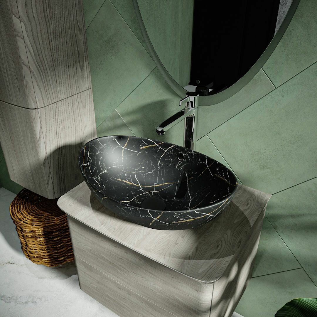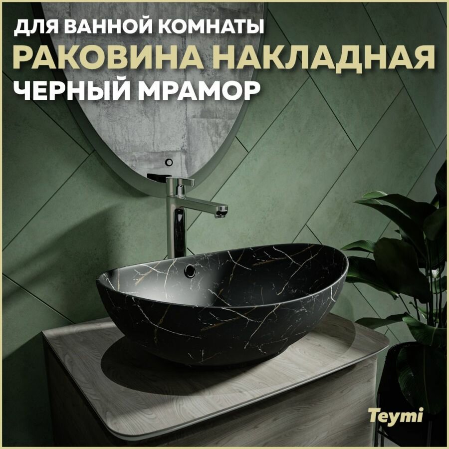 Раковина для ванной накладная Teymi Lori 60 цвет черный мрамор T50499 интересное: