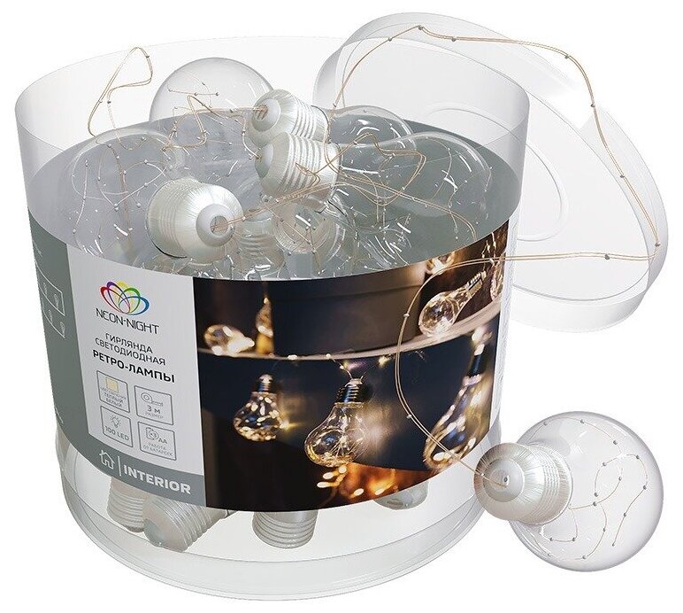NEON-NIGHT Гирлянда светодиодная "Ретро-лампы" , 3 м, теплый белый