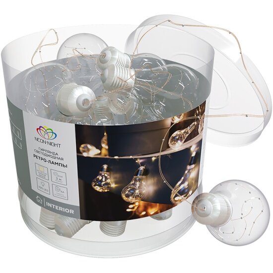 NEON-NIGHT Гирлянда светодиодная "Ретро-лампы" , 3 м, теплый белый