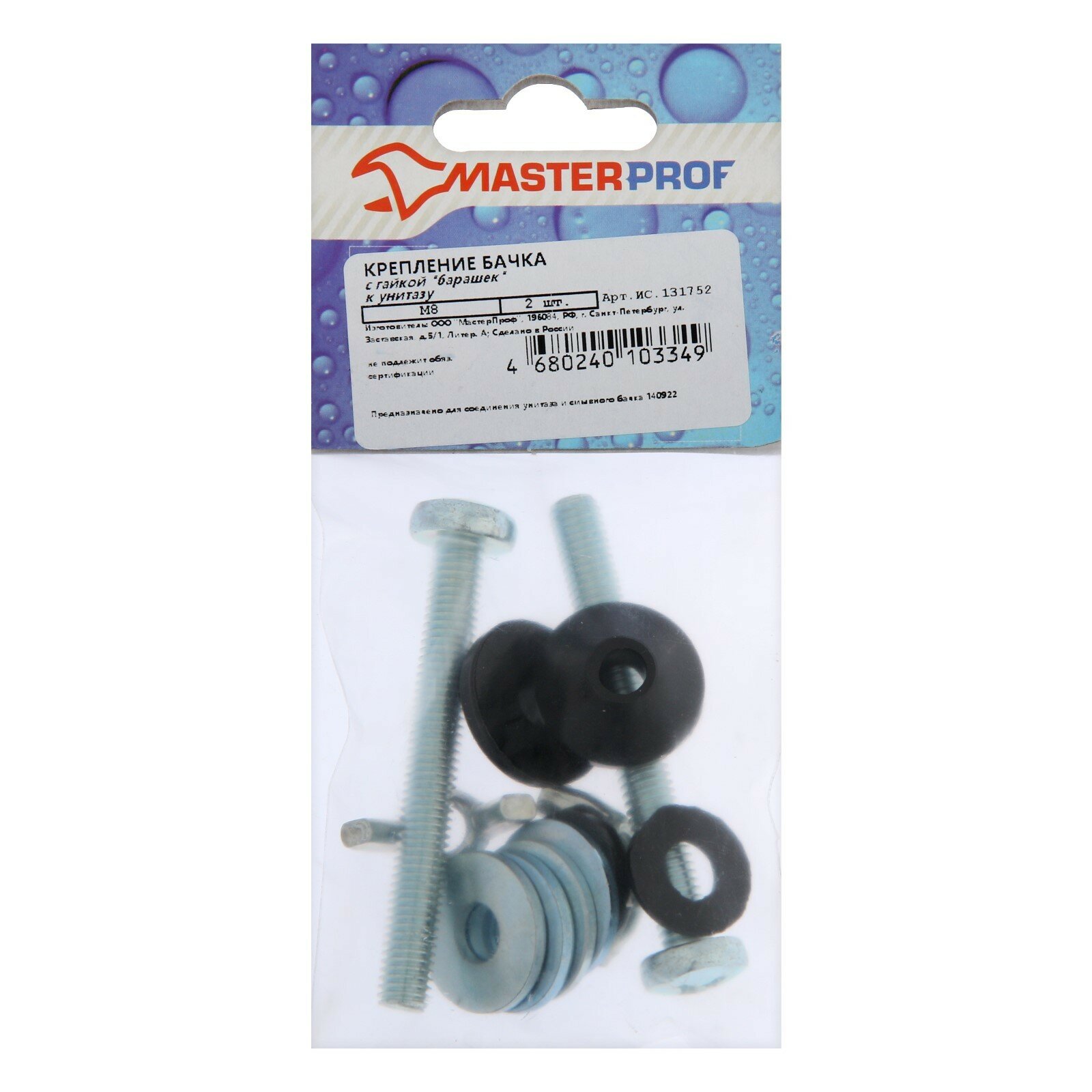 Крепеж бачка к унитазу MasterProf, М8, с гайкой "барашек", набор 2 шт. интересное: