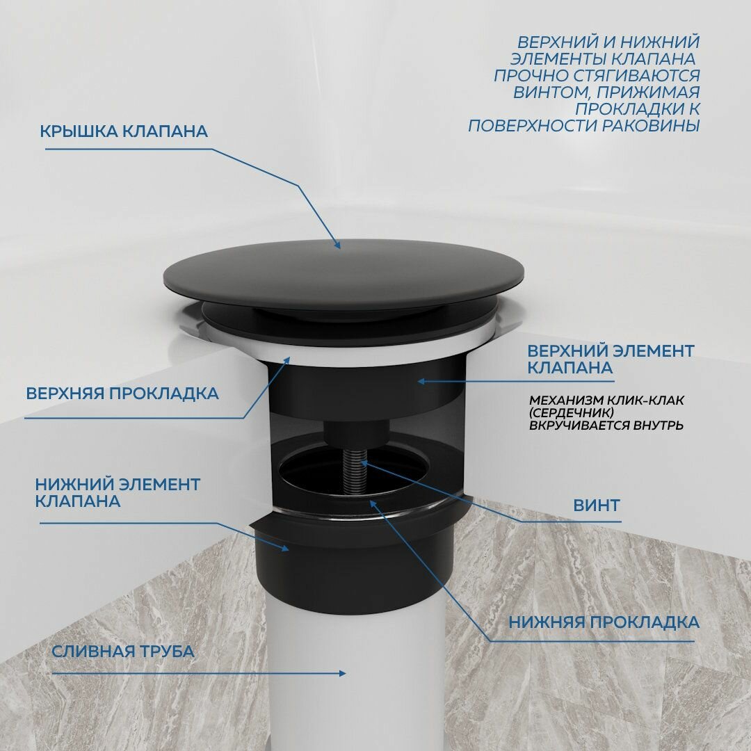СохранитьДонный клапан для раковины с переливом / без перелива универсальный Teymi Lina черный матовый T140114 интересное: