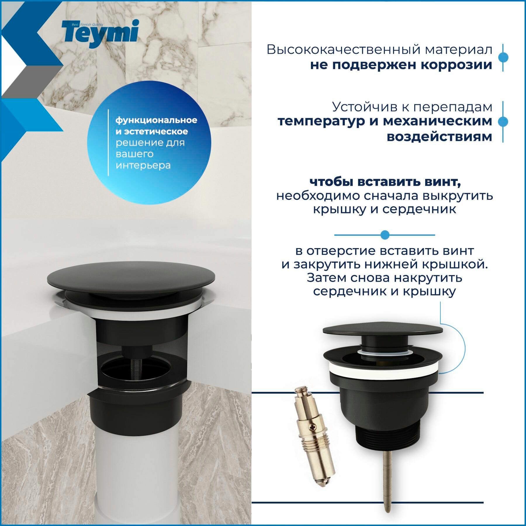 Купить Донный клапан для раковины с переливом / без перелива универсальный Teymi Lina черный матовый T140114