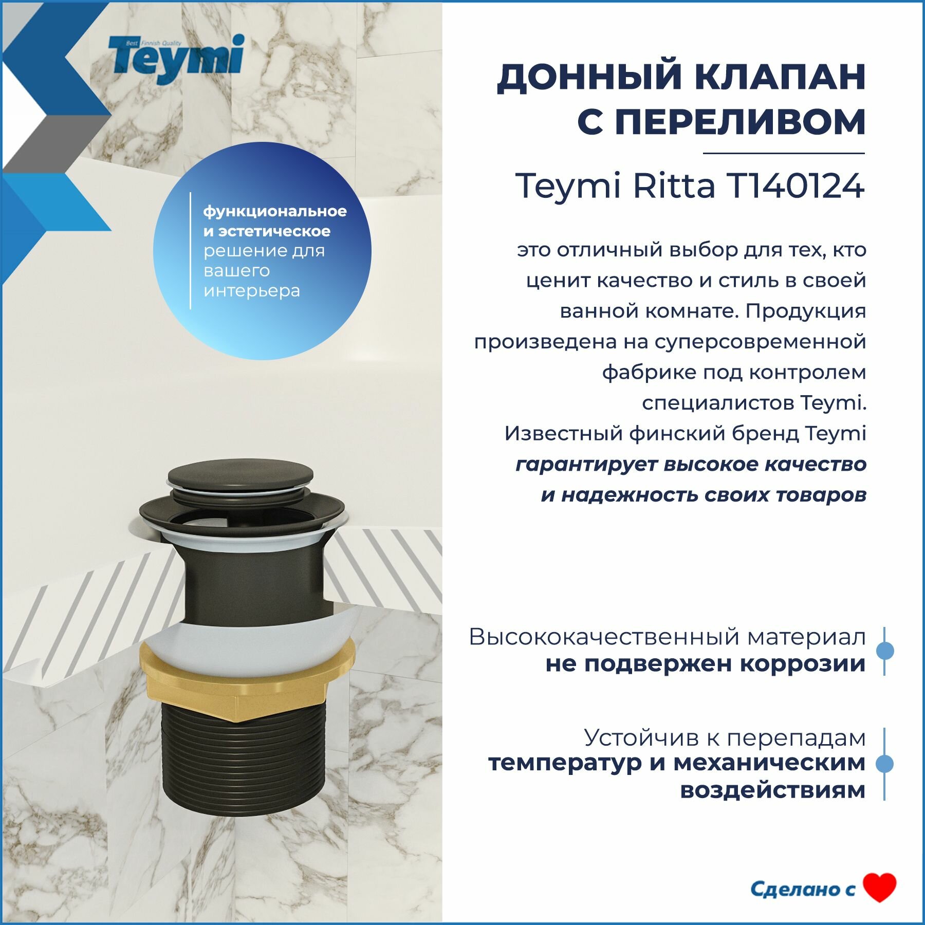 Купить Донный клапан для раковины с переливом Teymi Ritta черный матовый T140124