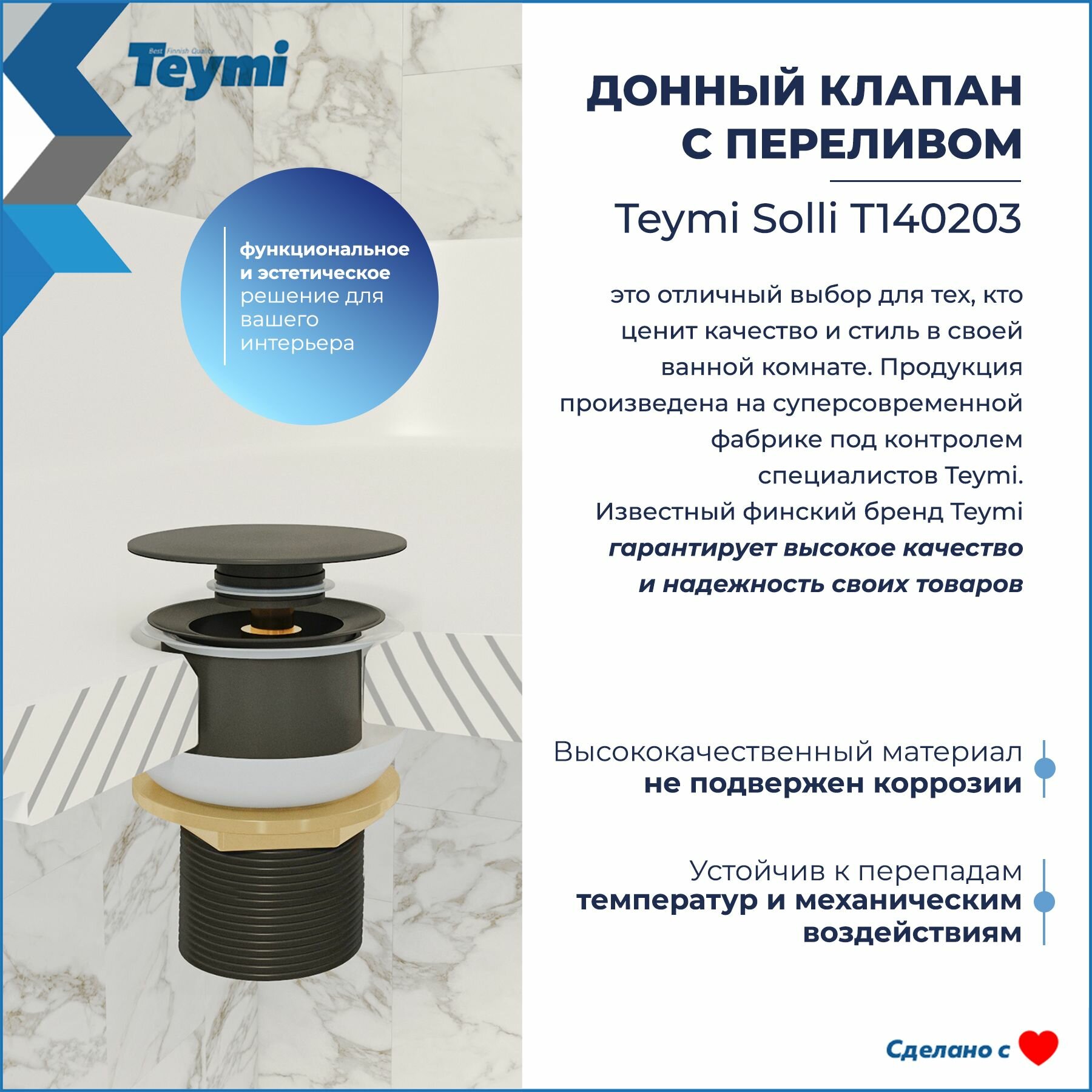 Ниже Вы можете прочитать отзывы на Донный клапан для раковины с переливом Teymi Solli графит матовый T140203, ознакомится с подробными характеристиками, посмотреть интересные обзоры и фотографии на Донный клапан для раковины с переливом Teymi Solli графит матовый T140203.