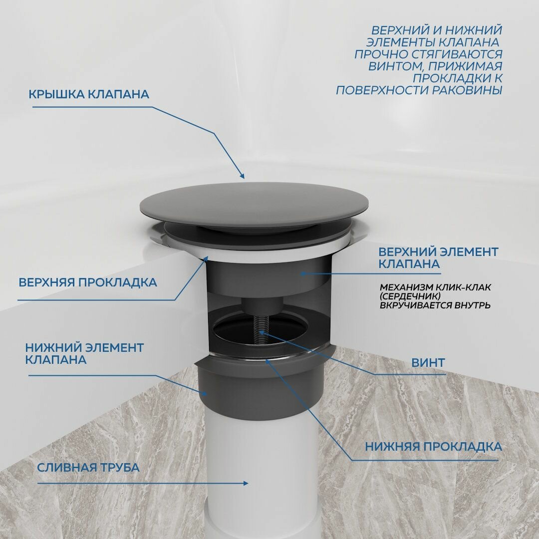 СохранитьДонный клапан для раковины с переливом / без перелива универсальный Teymi Lina графит матовый T140213 интересное: