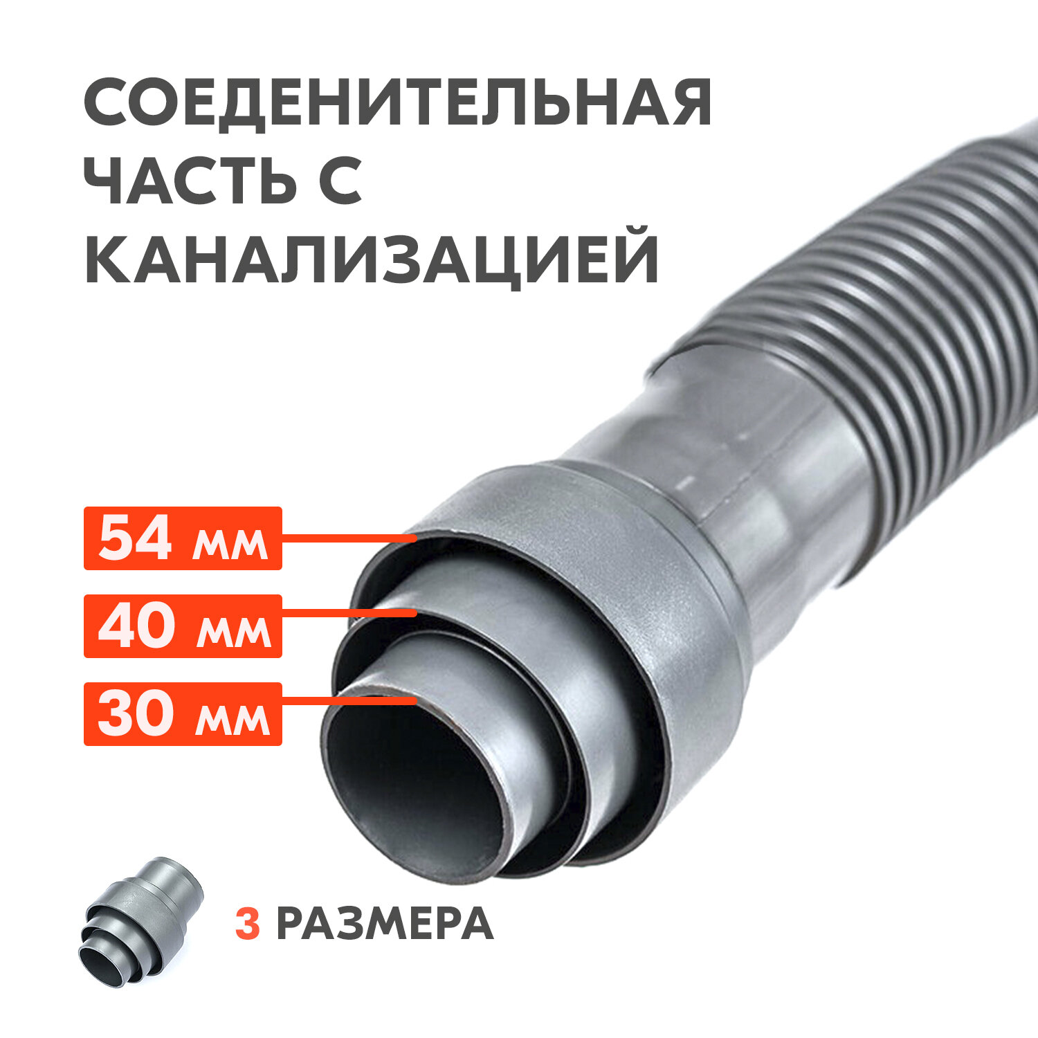Гофра Орио АС-10151, для сифона, пластик, полипропилен, белый, длина 360 - 850 мм
