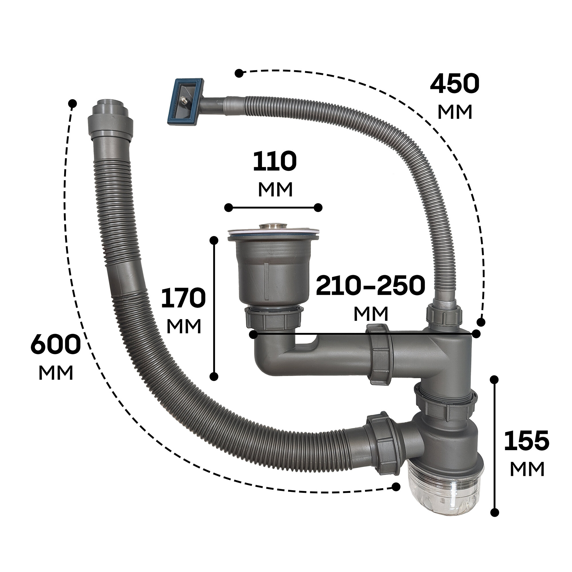 Купить Сифон Gerda для кухонной мойки из нержавеющей стали, цвет графит