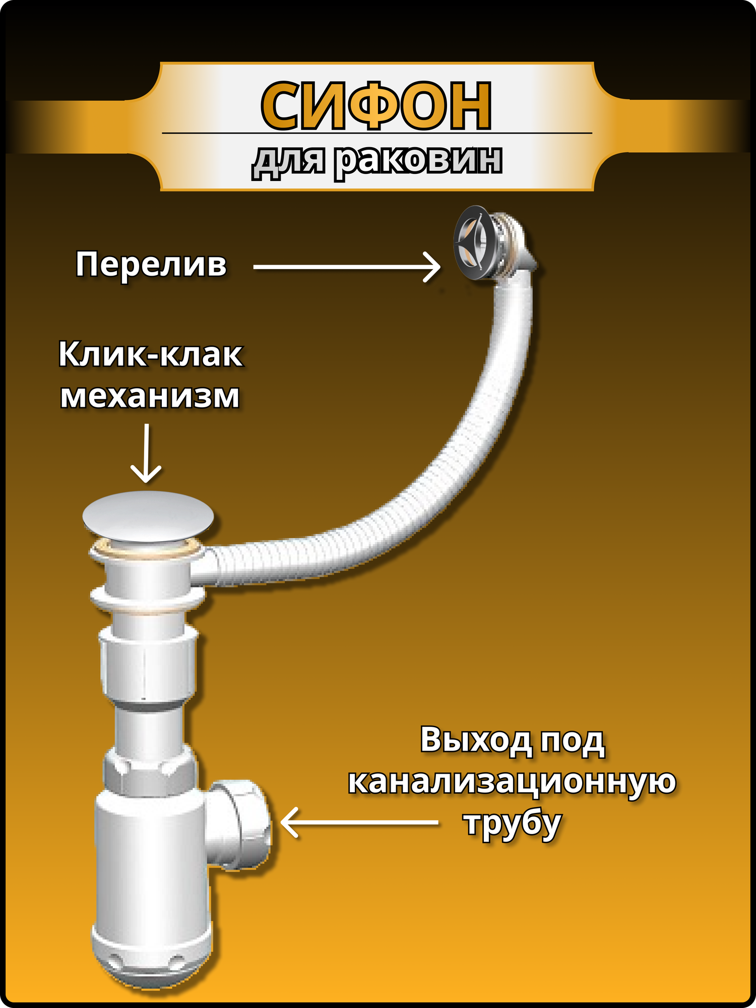 Сифон RealMarko клик-клак механизм и круглым переливом для раковин интересное: