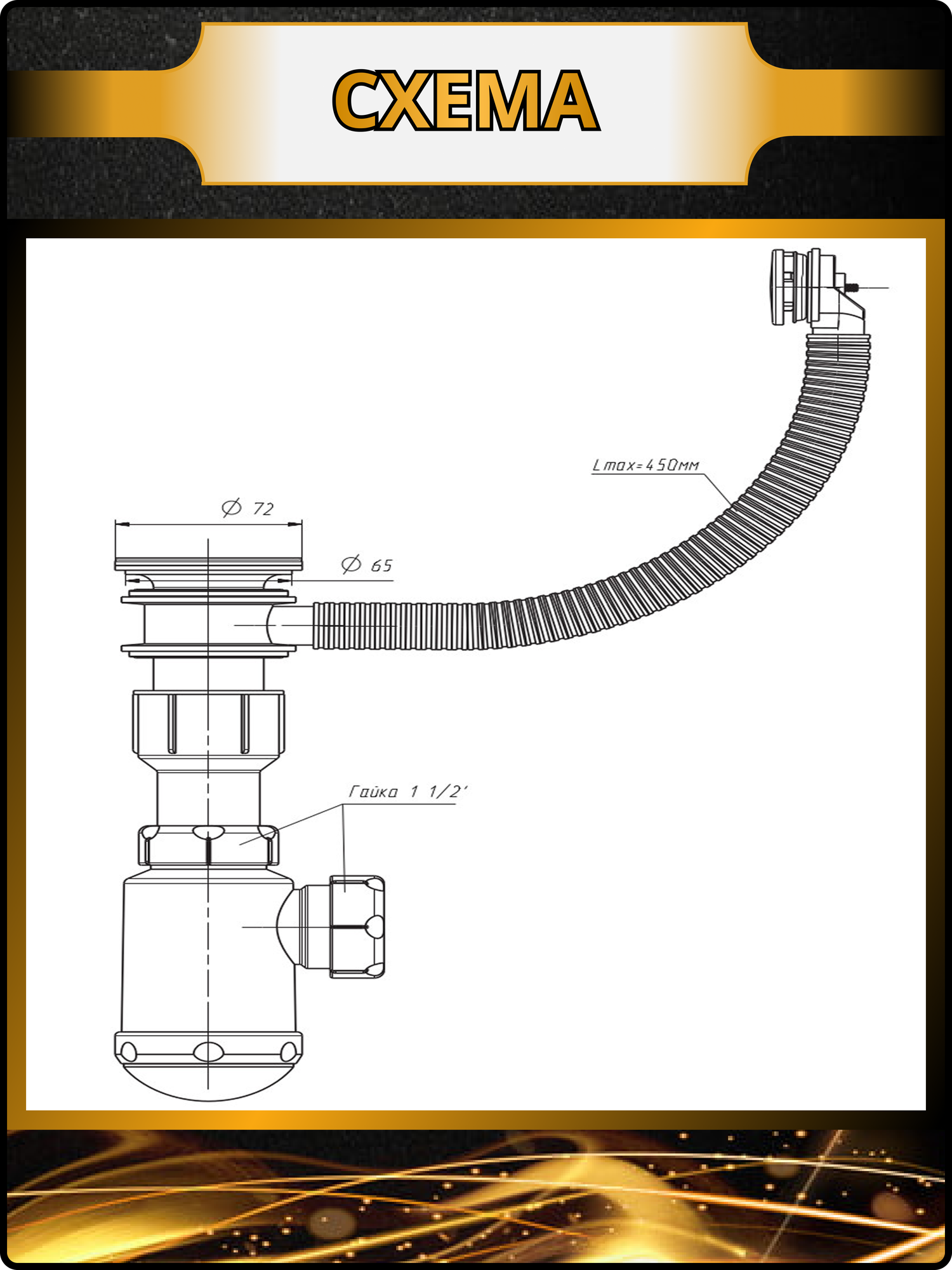 Сифон для мойки большая горловина с переливом, с отводом под сливной шланг и со съёмной корзинкой для мусора