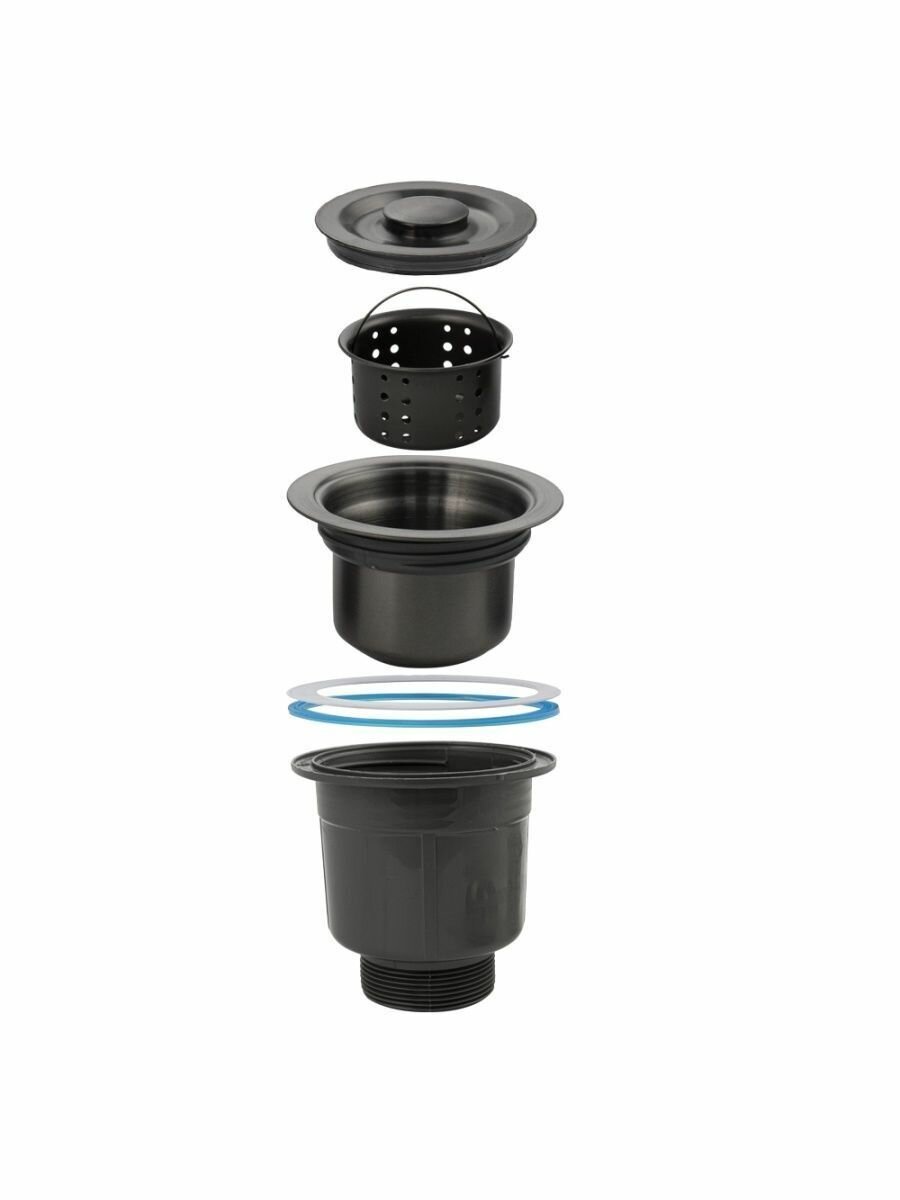 FABIA 8734 FABIA PROFI 8734 Сифон для мойки большая горловина с переливом графит, с отводом под сливной шланг и со съёмной корзинкой для мусора Сифон для мойки