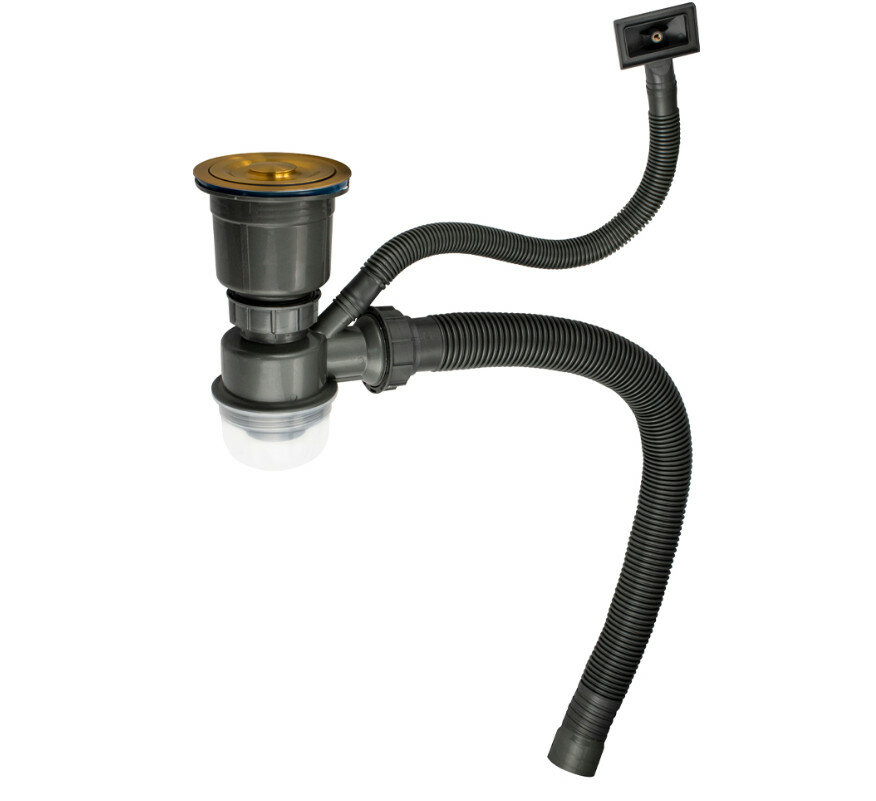 СохранитьFABIA PROFI - Сифон для мойки с переливом золото, с отводом под сливной шланг и со сьёмной корзинкой для мусора (8735) интересное: