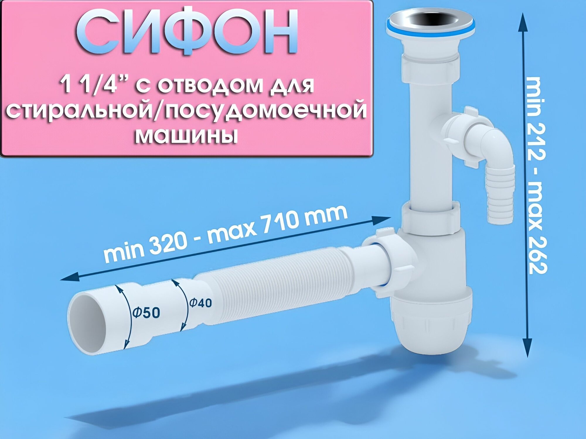 Сифон для раковины над стиральной машиной, умывальника слив, горловина 65 мм интересное: