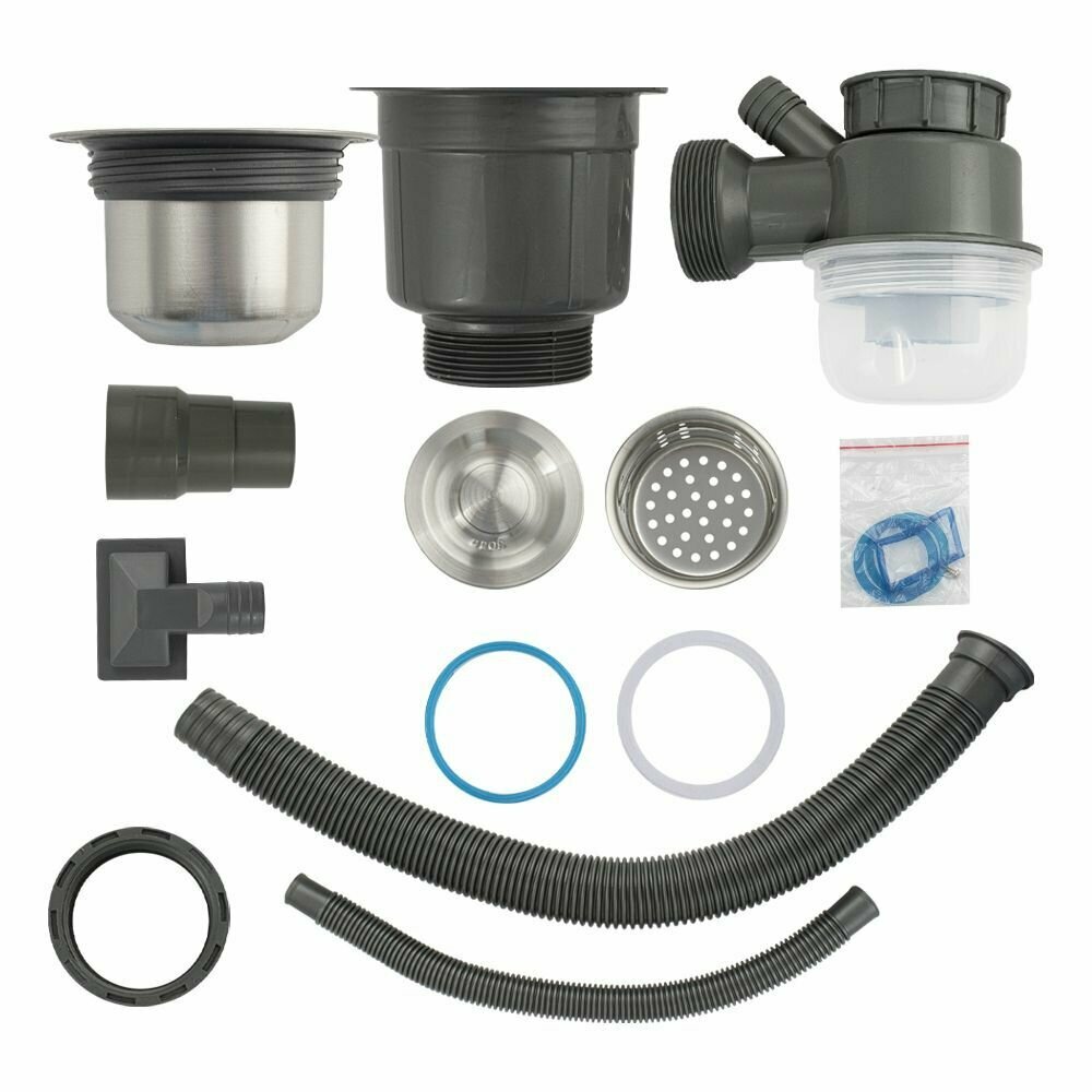Сифон для мойки большая горловина с переливом, с отводом под сливной шланг и со съёмной корзинкой для мусора интересное: