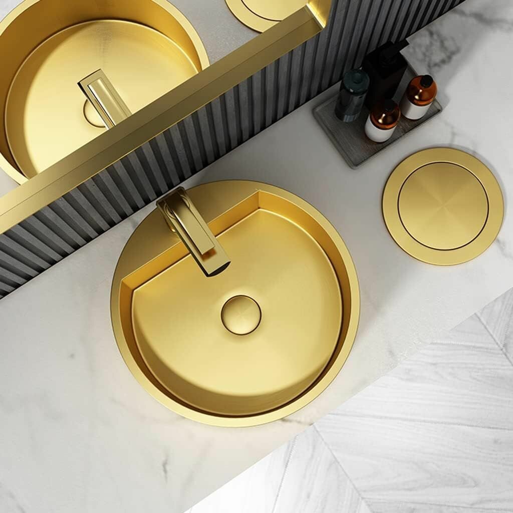 Купить Донный клапан для раковины универсальный (с переливом и без) выпуск матовое золото