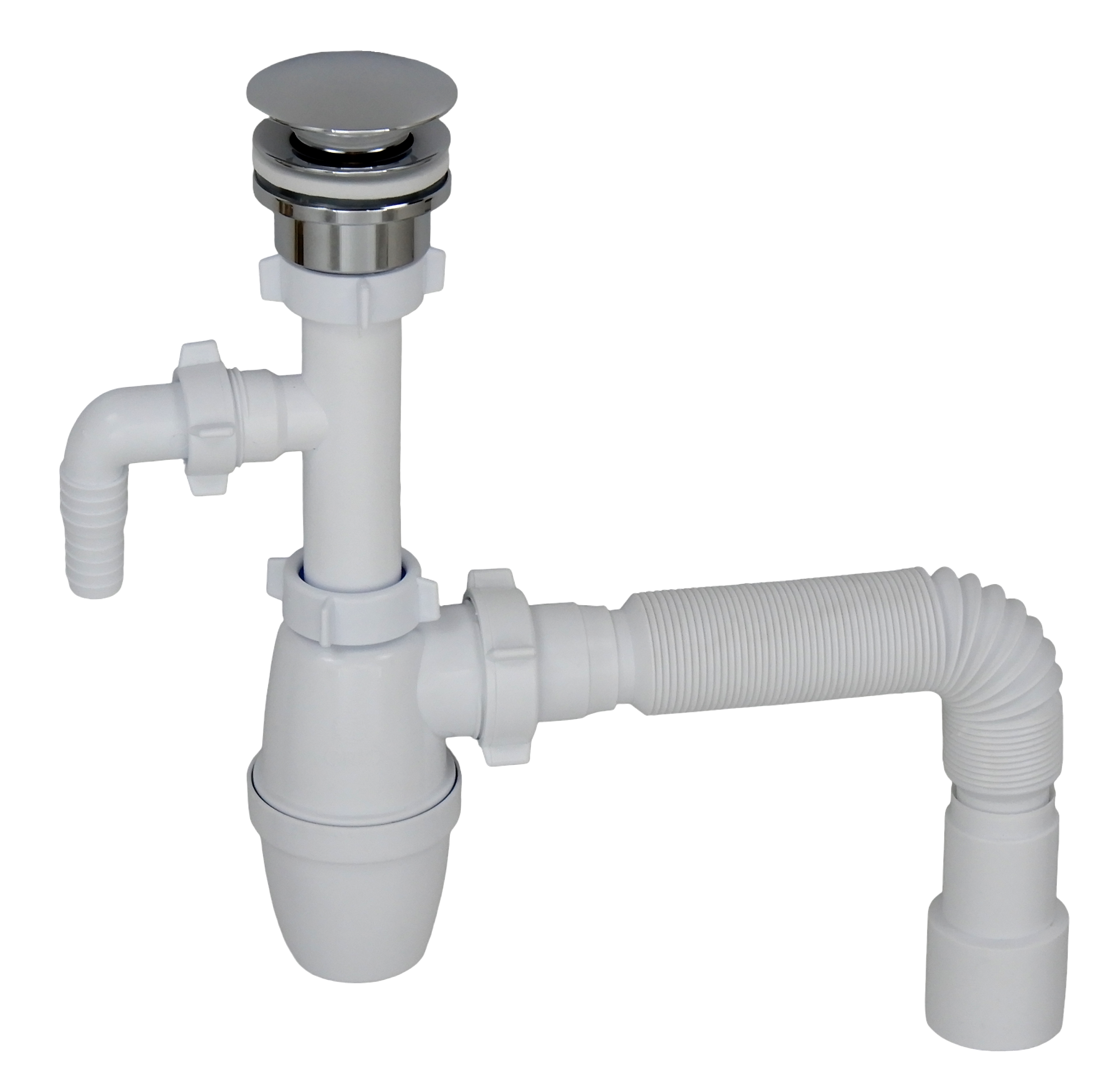 Сифон для раковины КН098 с отводом под стиральную машину и универсальным донным клапаном