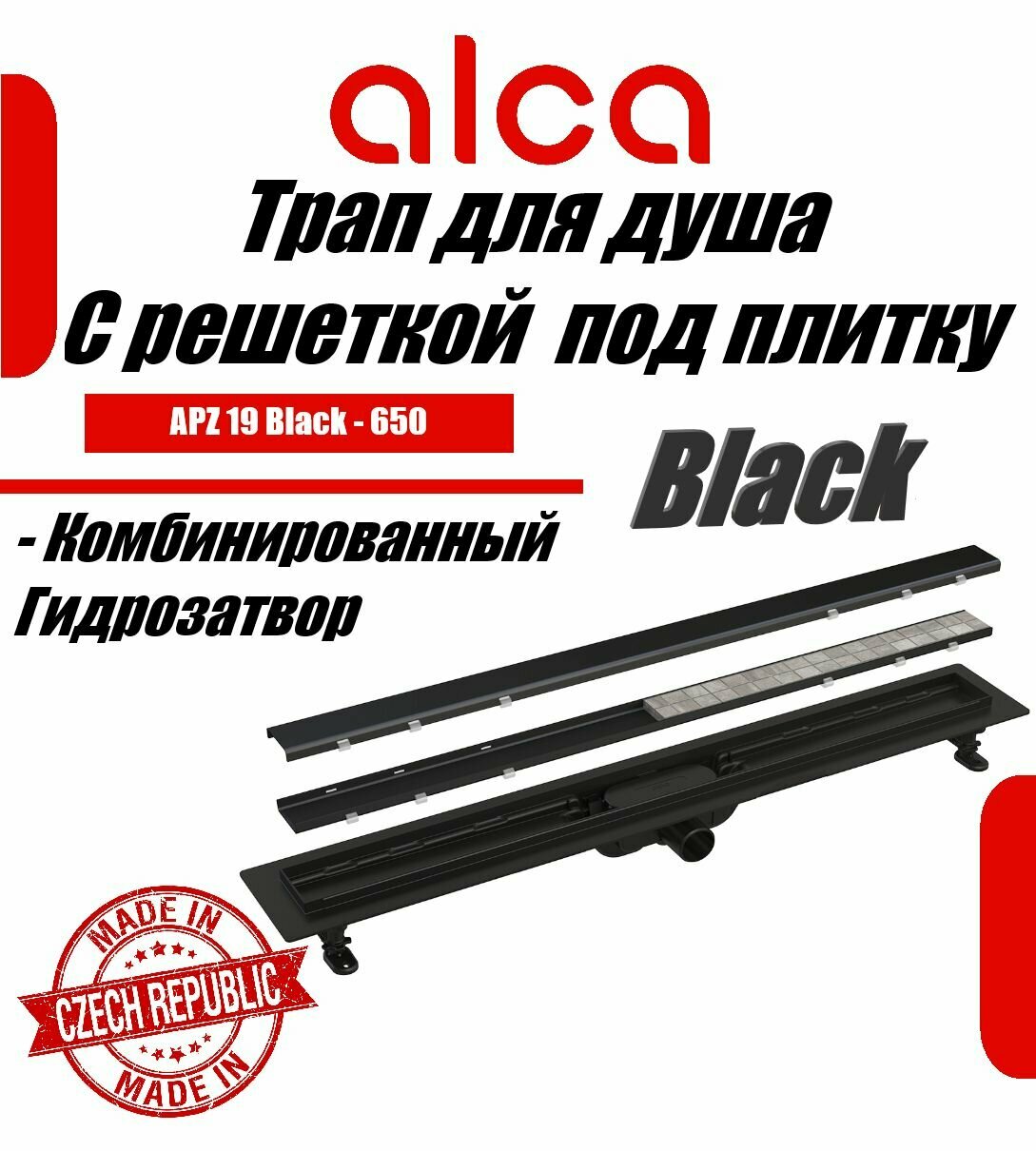 Купить Водоотводящий желоб Alcaplast APZ19BLACK-650 c двухсторонней решеткой под укладку плитки Черный матовый