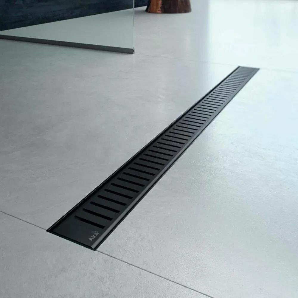 Водоотводящий желоб Alcaplast APZ19BLACK-950 c двухсторонней решеткой под укладку плитки Черный матовый