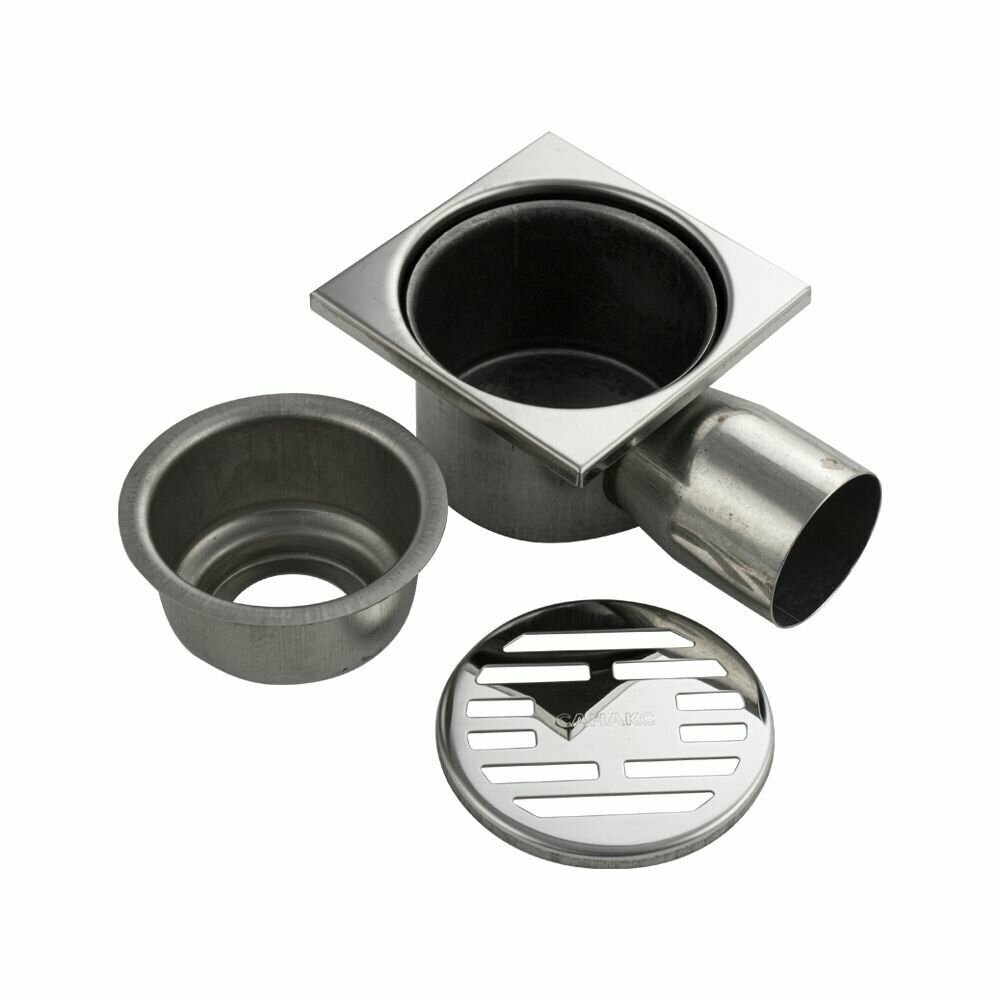 Трап душевой горизонтальный из нержавеющей стали 100х100 с гидрозатвором , Хром, санакс (00021) интересное: