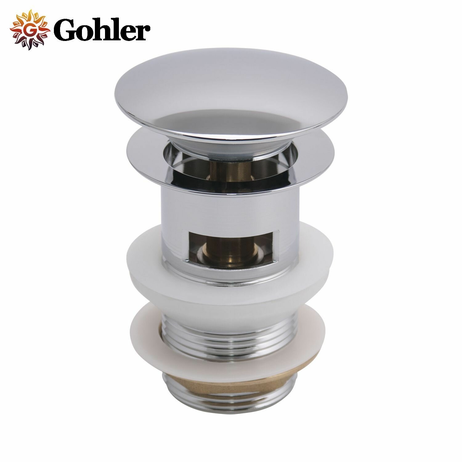 Донный клапан для раковины универсальный (с переливом и без) выпуск белый