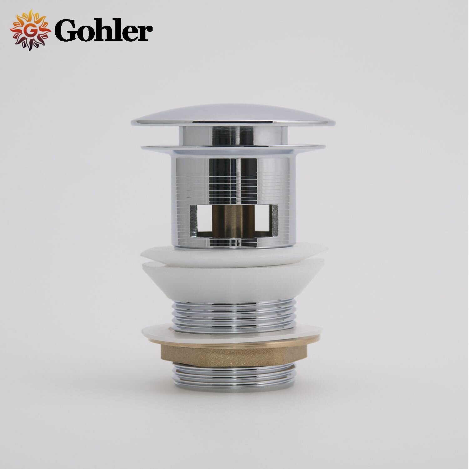 Купить Донный клапан для раковины с переливом высокий клик-клак, выпуск хром