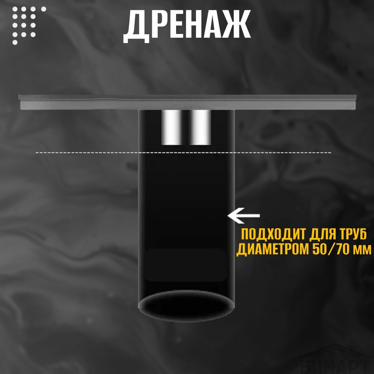 Трап линейный хром, душевой лоток с сухим затвором, 800х100мм, из нержавеющей стали, с вертикальным выходом и с зазором под плитку