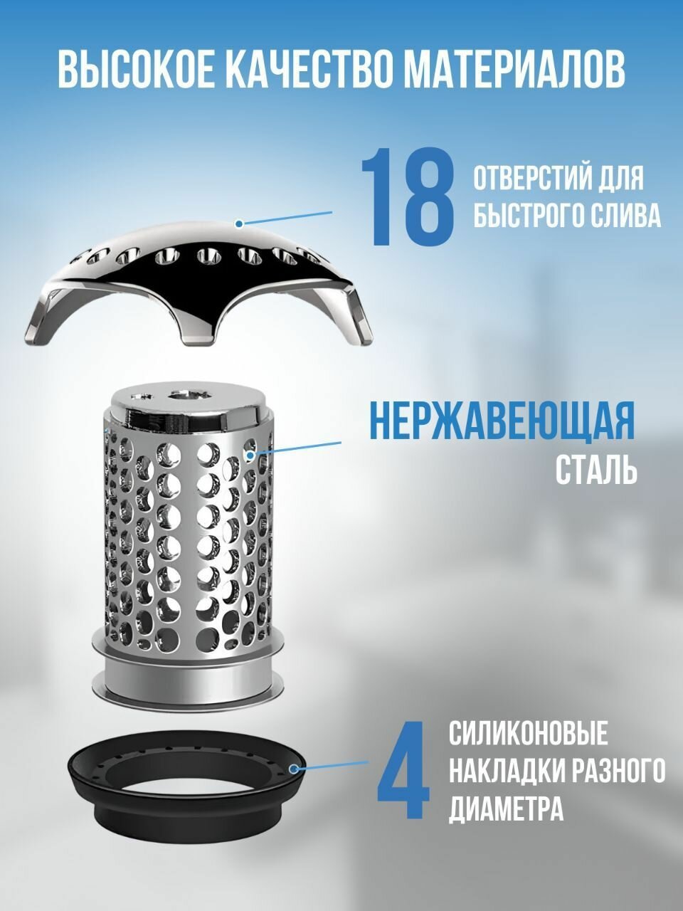 Купить Фильтр для слива, нержавеющая сталь, встраиваемый, серый металлик, 50г