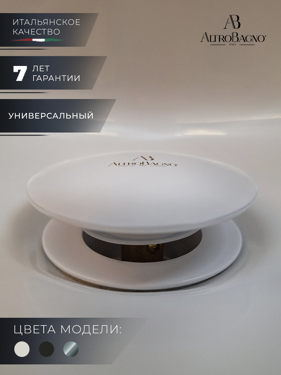 Донный клапан для раковины универсальный (с переливом / без перелива), AltroBagno, белый матовый интересное: