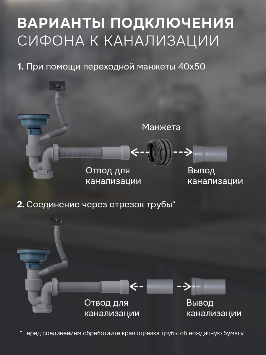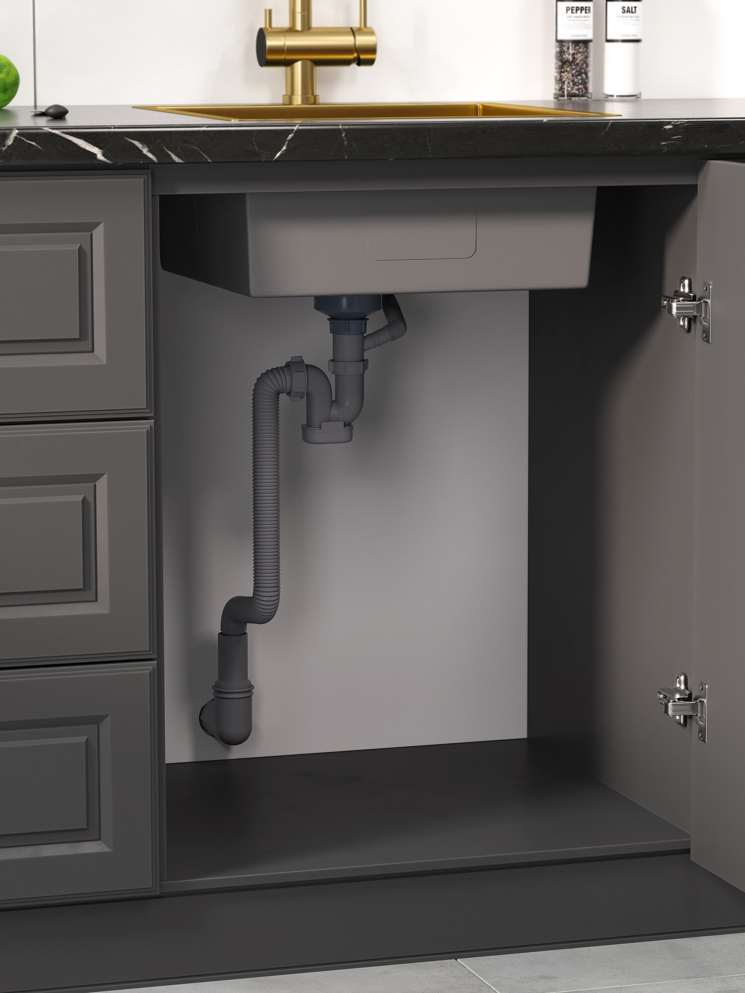 Сифон для одночашевой кухонной мойки с выпуском Reflexion Arno RX3001BL, оружейная сталь