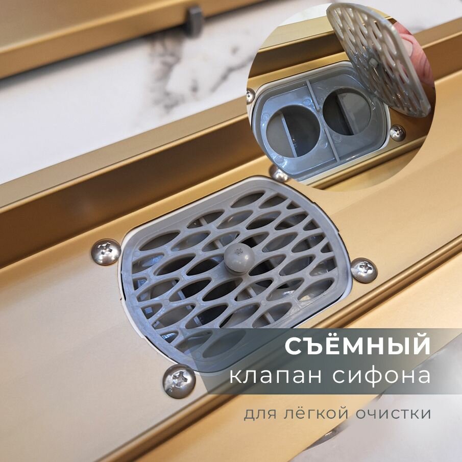 Купить AltroBagno Душевой трап под плитку с сухим и гидрозатвором (комбинированный) 600 мм, матовое золото