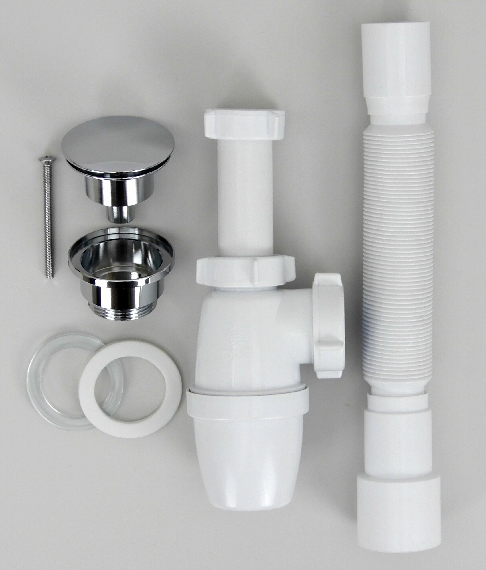 Купить Сифон сливной для раковины белый и универсальный донный клапан хром КН066