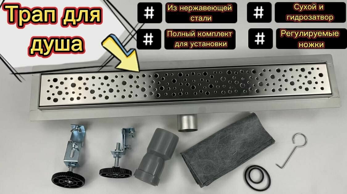 Душевой трап с горизонтальным выпуском TIM 70 мм/950 мм (Защита от запаха: сухой + гидрозатвор): трап для душа BAD419502