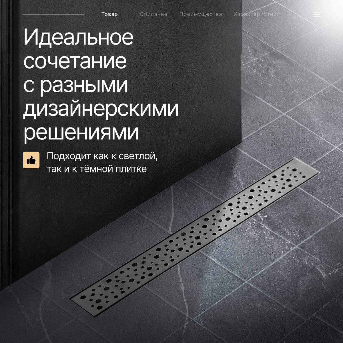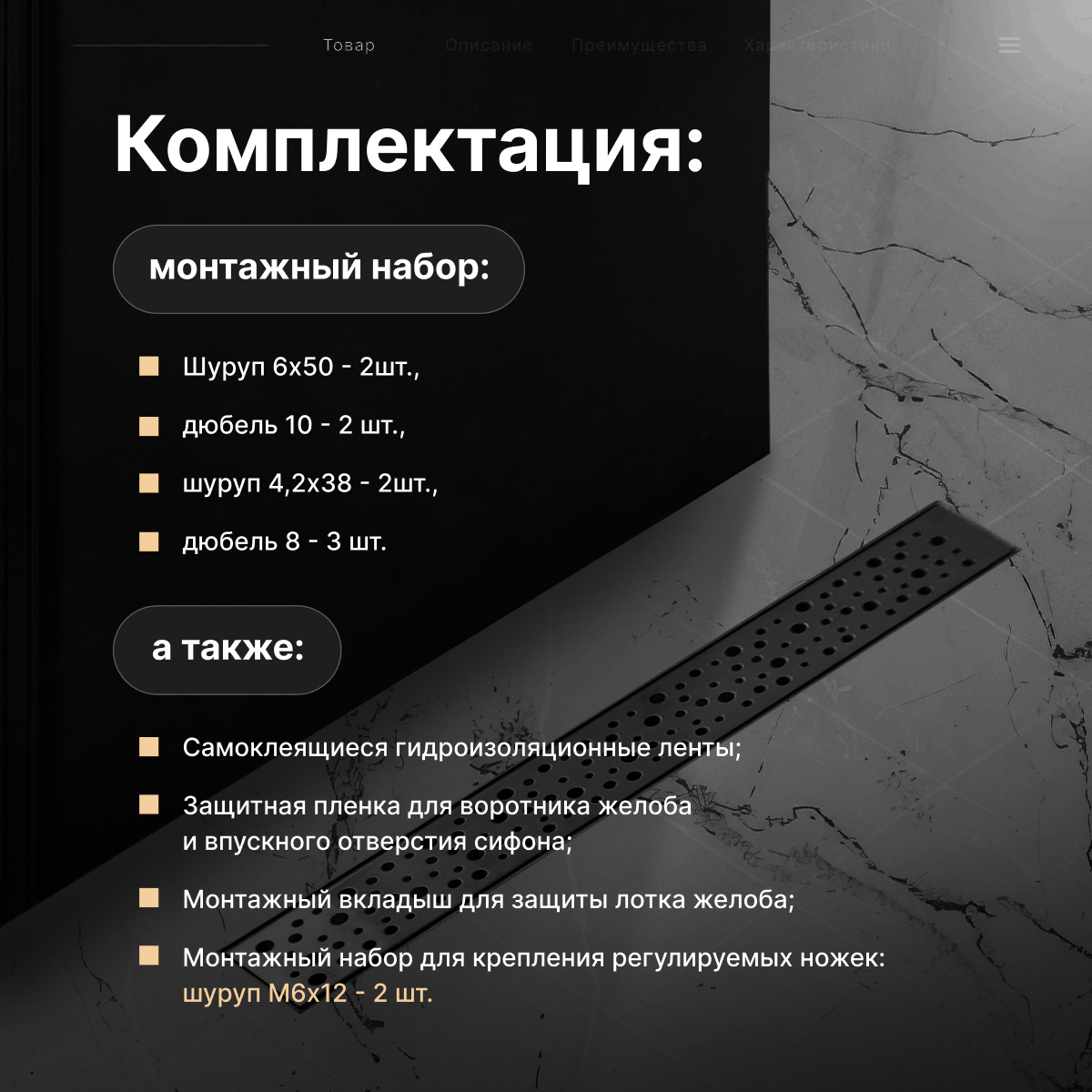 TIM Душевой трап (защита от запаха: сухой+гидрозатвор) черный матовый 600 мм BAD464002BK