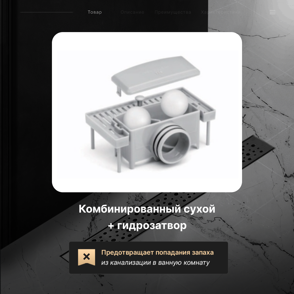 Трап лоток с горизонтальным выпуском 70мм/950мм (Защита от запаха: сухой + гидрозатвор) TIM арт. BAD419502