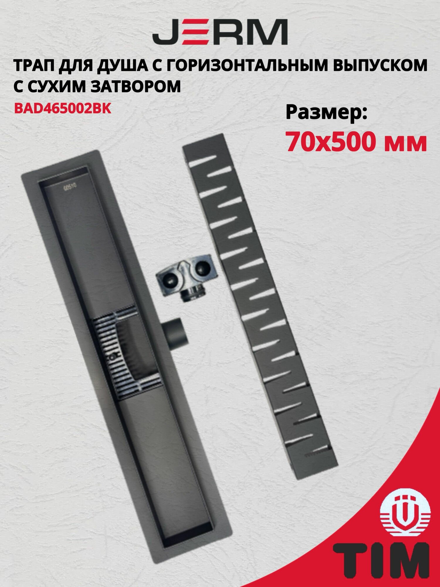 Купить Трап для душа, душевой лоток с горизонтальным выпуском 70 мм/500 мм с сухим затвором черный TIM BAD465002BK