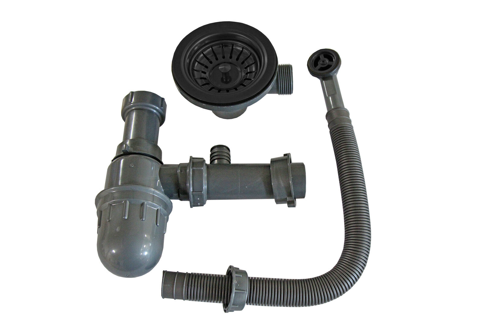 Сифон для мойки большая горловина с переливом, с отводом под сливной шланг и со съёмной корзинкой для мусора