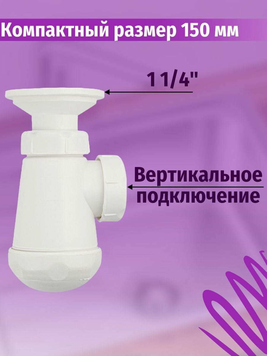Сифон для раковины 1 1/4, с решеткой из нержавеющей стали и пробкой, из АБС пластика, модель компакт, цвет белый. интересное: