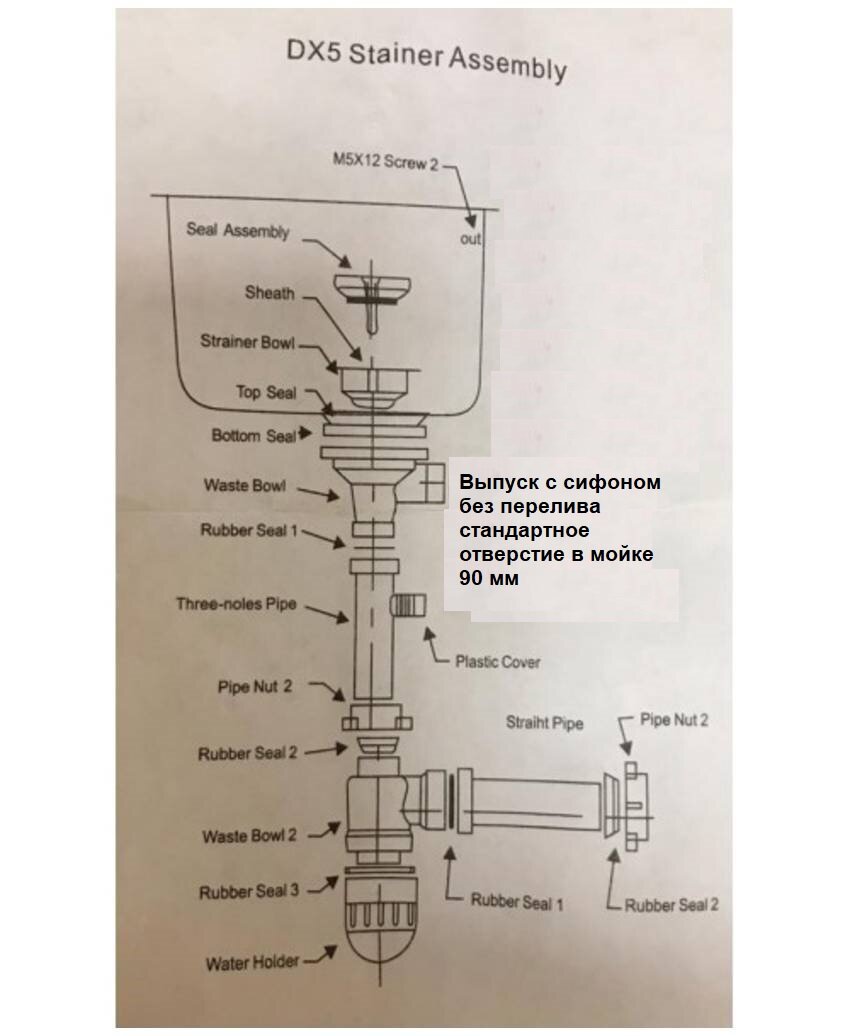 Сифон для мойки большая горловина с переливом, с отводом под сливной шланг и со съёмной корзинкой для мусора