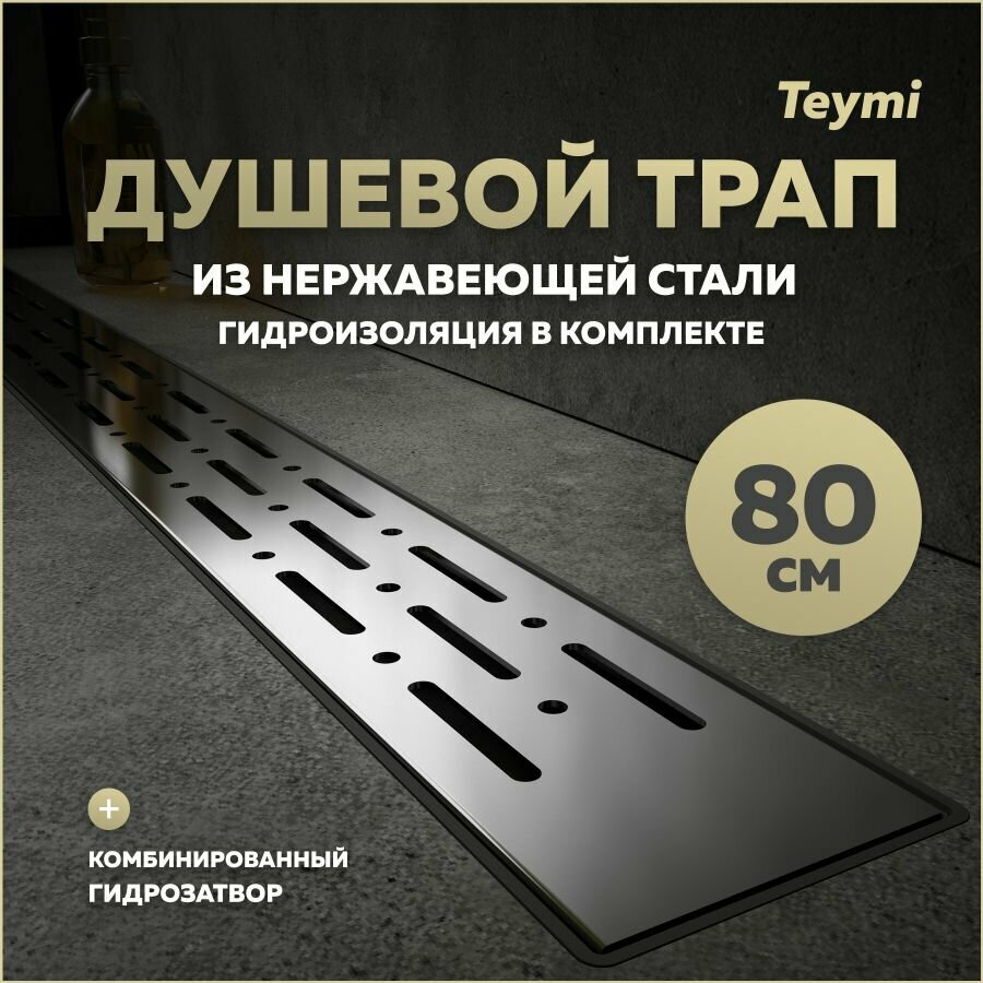 Купить Трап для душа с комбинированным гидрозатвором Teymi Helmi Prime 80 см решетка нержавеющая сталь T90337