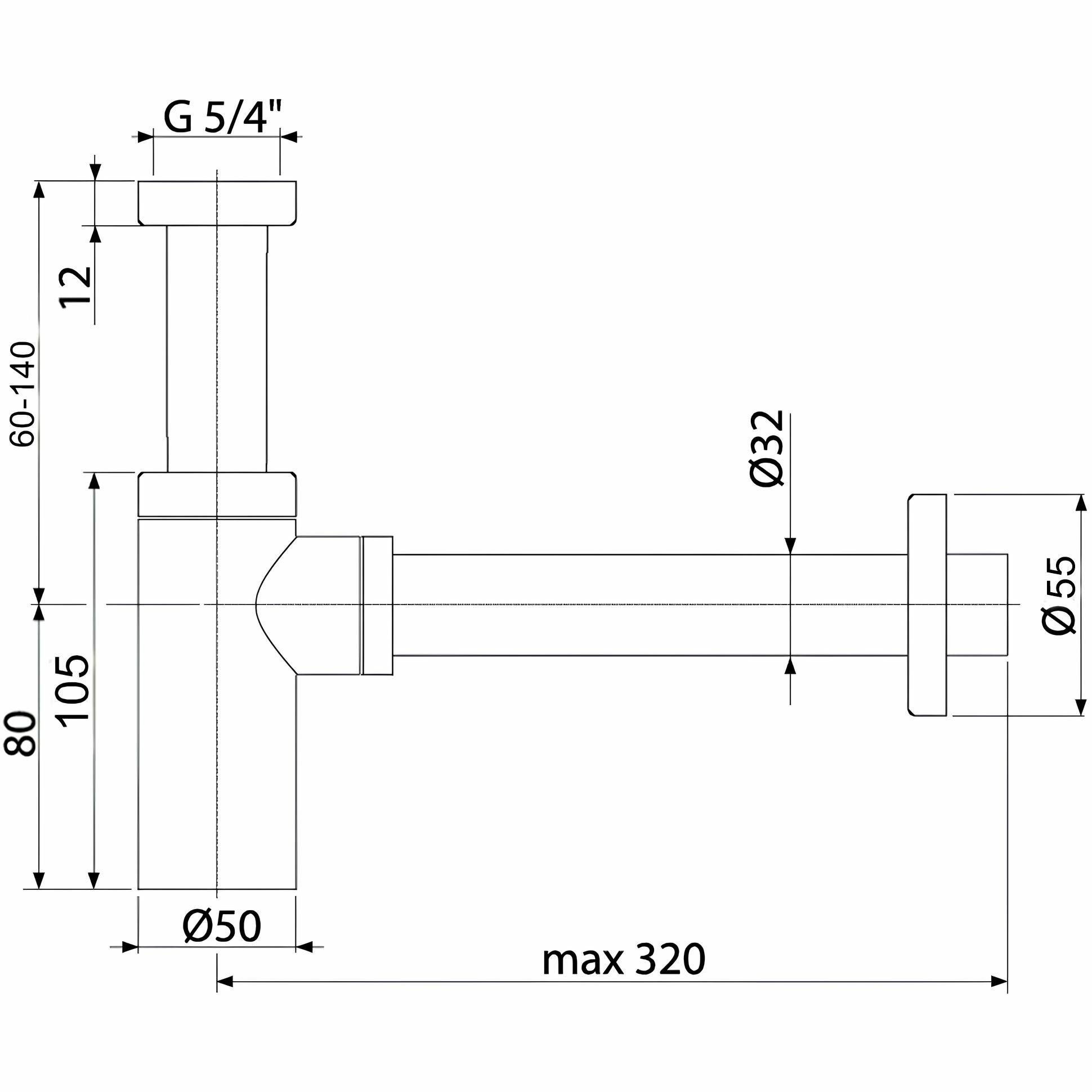 Сифон закругленный, хром , нержавеющая сталь, регулируемая верхняя часть