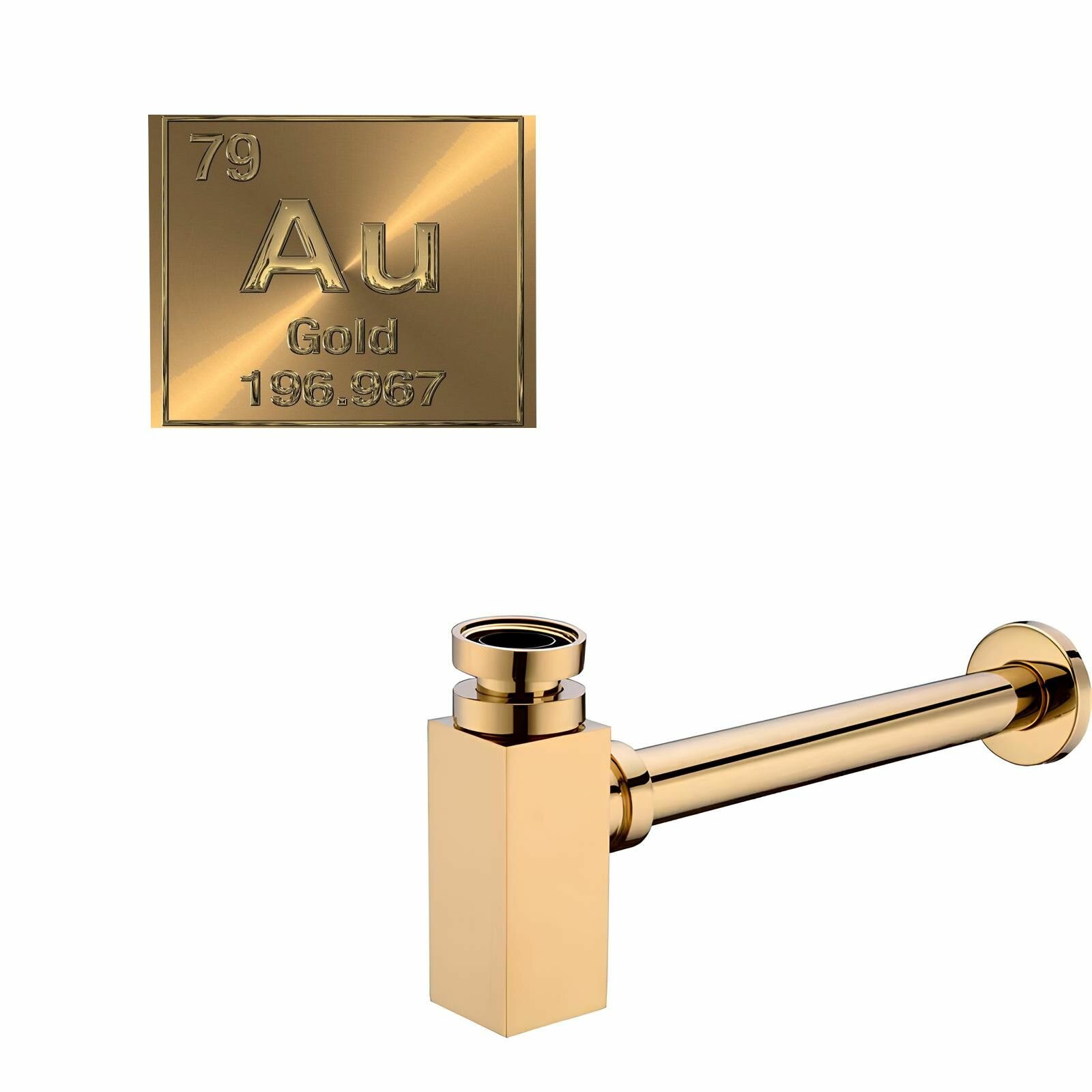 Купить Сифон квадратный, цвет золото, латунный, регулируемая верхняя часть