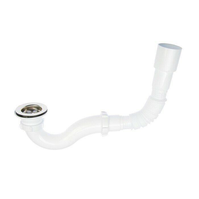 Сифон для мойки большая горловина с переливом, с отводом под сливной шланг и со съёмной корзинкой для мусора