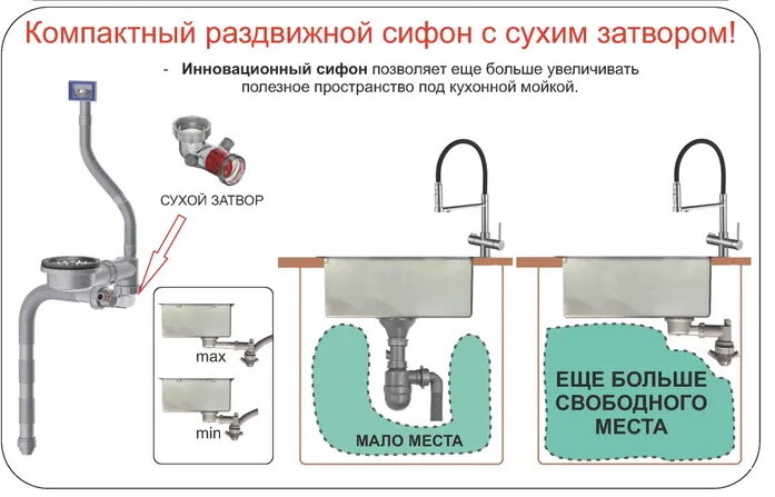 Плоский сифон с сухим затвором ZorG KC 1 BRONZE с решеткой слива цвет бронза 90 мм для металлических моек интересное: