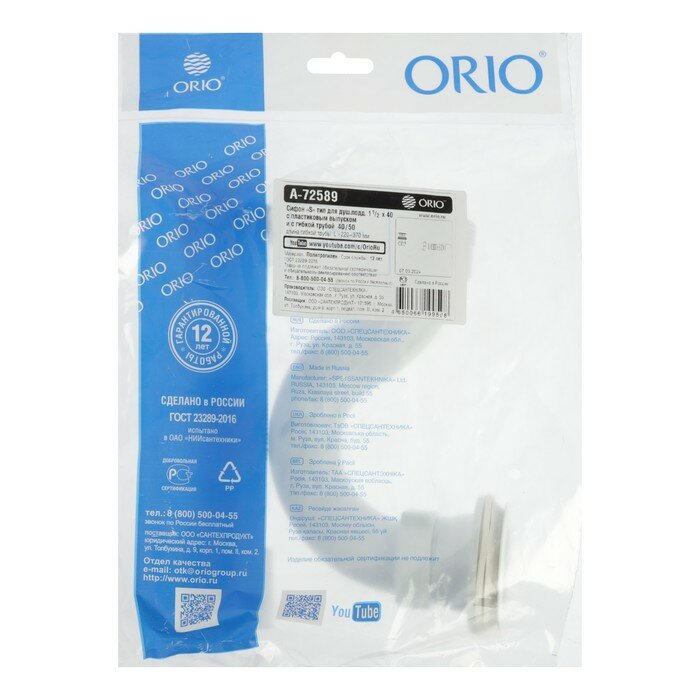 Сифон для поддона трубный 1 1/2"x40 с гофрой 40х40/50 выпуск с пластиковой решёткой D=70мм Орио А-72589 интересное: