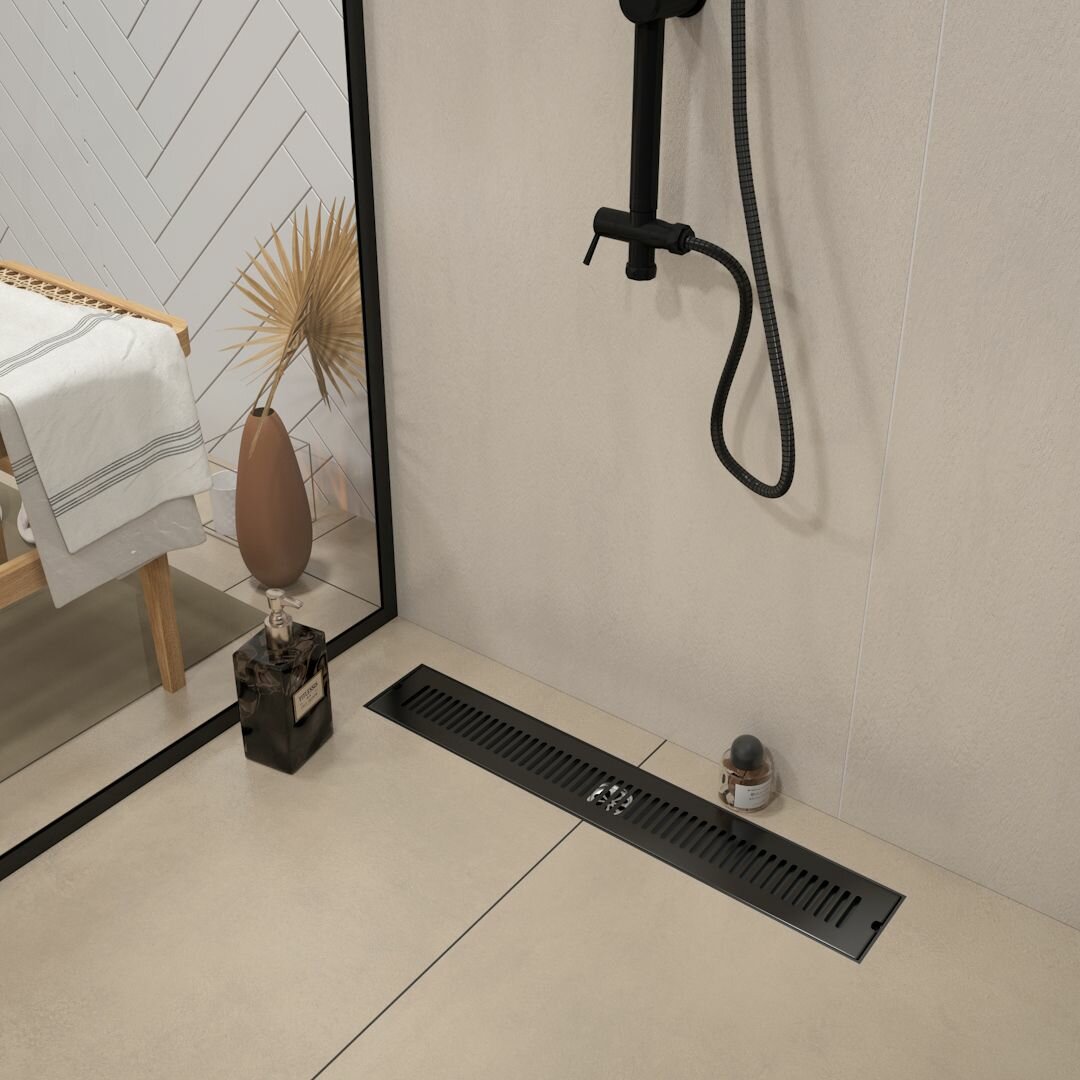 Трап для душа с сухим затвором вертикальный выпуск Teymi Helmi 10х50 c решеткой черный T90330