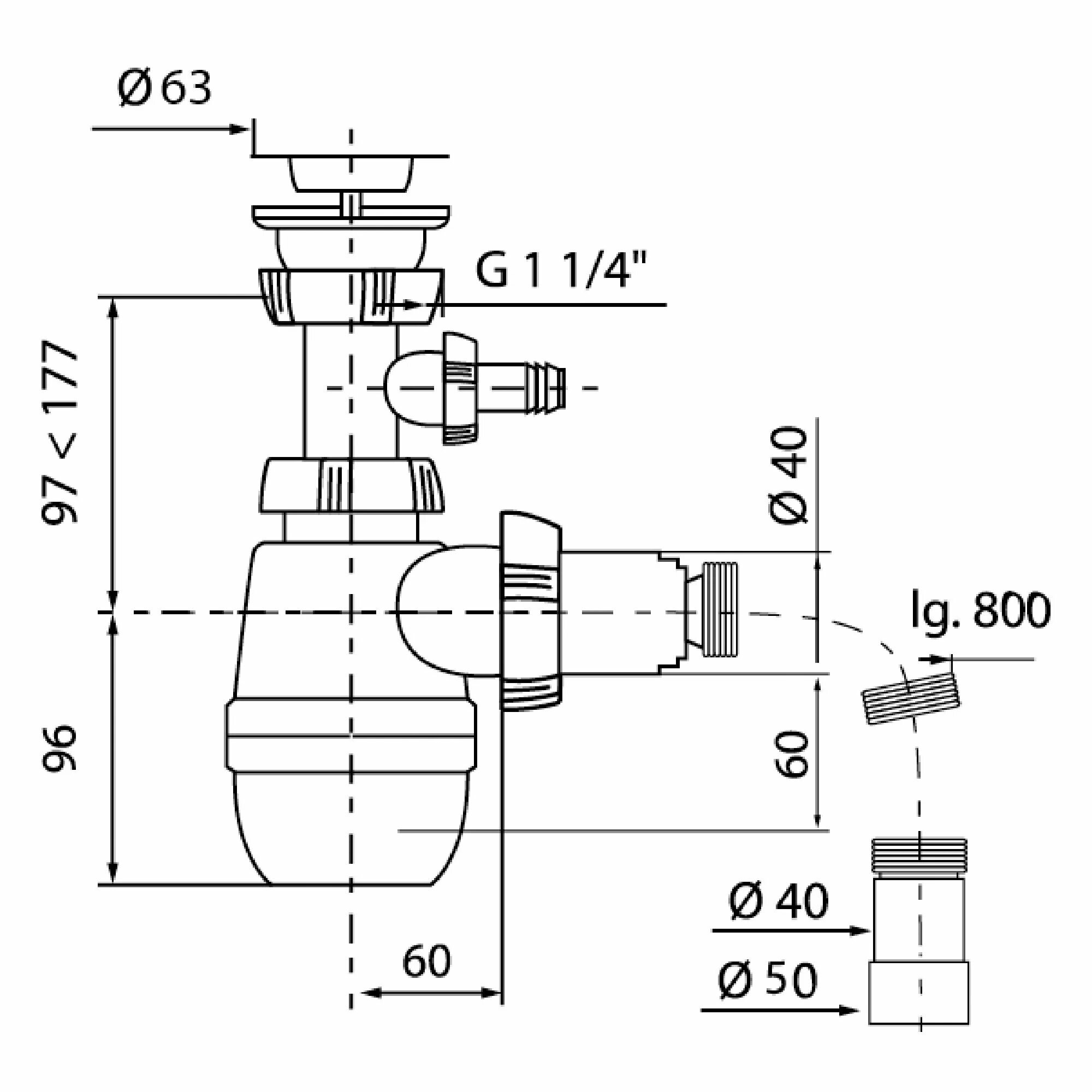 Сифон для мойки Equation без выпуска ø40 мм с отводом для стиральной машины