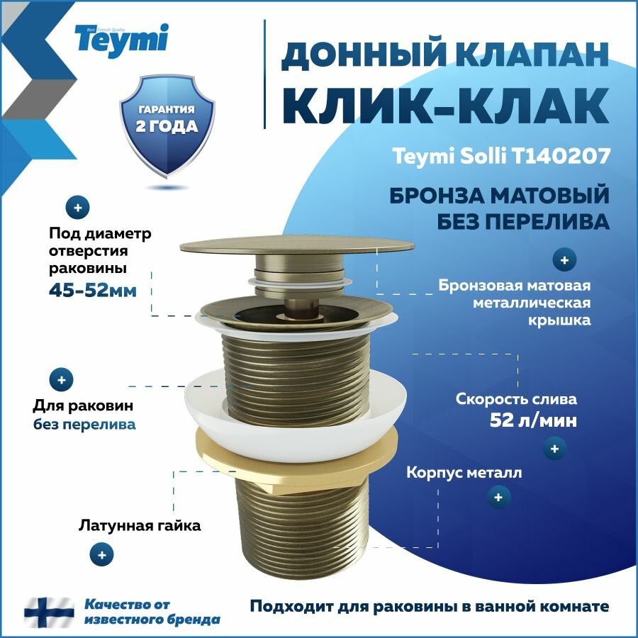 Донный клапан для раковины без перелива Teymi Solli бронза матовый T140207 интересное: