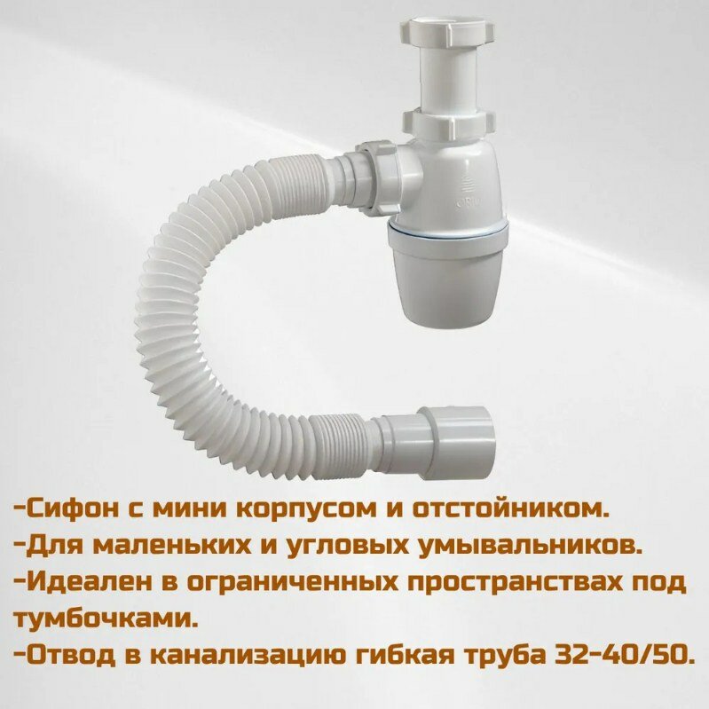 Сифон для раковины цвет графит с донным клапаном без перелива интересное: