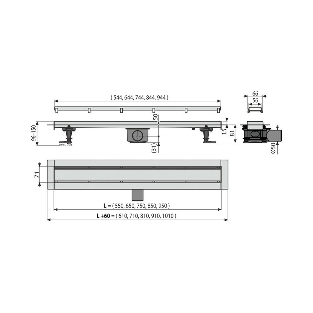 Душевой лоток Alca Plast AlcaPlast APZ1106-550 Душевой лоток Professional, нержавеющая сталь
