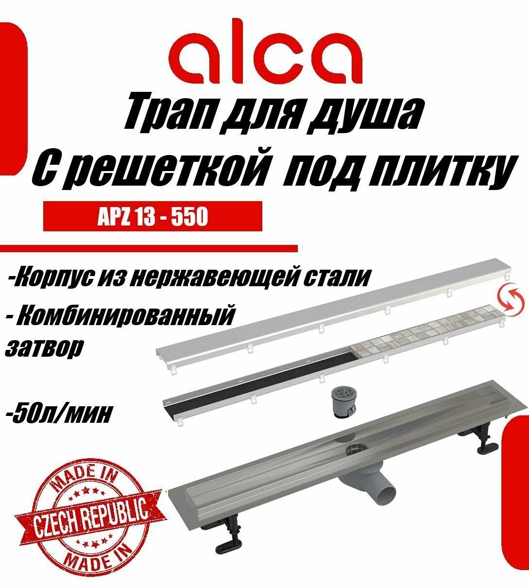 Купить Водоотводящий желоб Alcaplast APZ13-DOUBLE9 550 с двухсторонней решеткой под укладку плитки