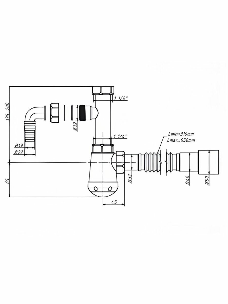 Сифон для раковины с донным клапаном черный глянцевый без перелива и отводом под стиральную машину интересное: